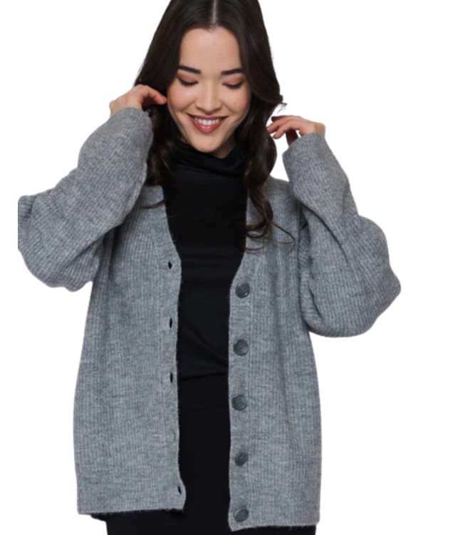 In the softest yarn ever, with a mohair style finish for a lofty look, you will adore this cardigan. Such pretty detailing - from the textural rib stitch to the faux horn buttons, this cardigan features a flattering v-neck and super stretchy fabric with a slouchy fit. 24" length from shoulder to hem, it looks great on its own or layered over a tank or tee.
