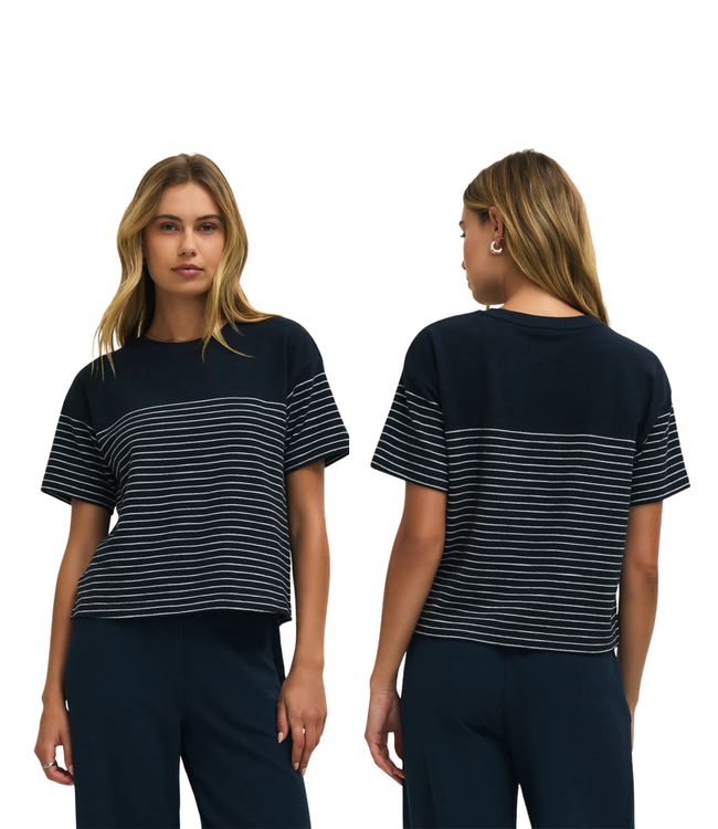 This striped top features a textured knit blend in a relaxed silhouette. Pair with the Andre Wide Leg Pant for your most comfortable outfit yet.