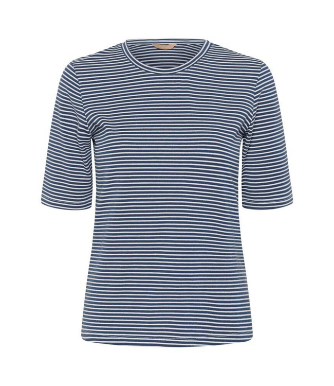 This women's striped T-shirt offers a regular fit, round neckline, and half sleeves for versatile comfort. Its timeless design ensures effortless pairing for everyday style and casual occasions.