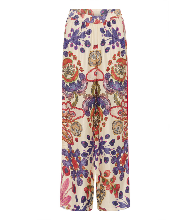 Wide-leg trousers designed for comfort and effortless style. This relaxed fit features a soft elasticated waistband and ankle-length cut, making them ideal for casual and versatile wear throughout the day.