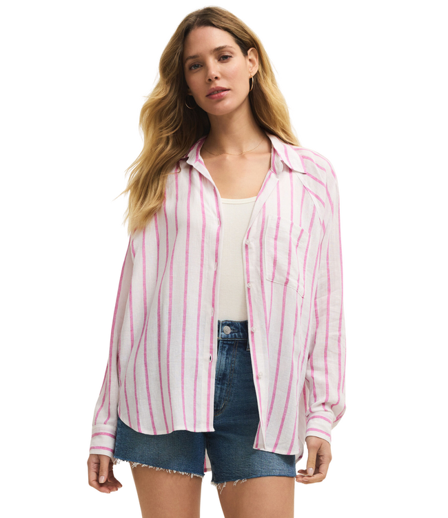 You'll love the easy, breezy comfort of this classic stripe button-up. Featuring that soft, drapey feel you look for, you can wear it alone or as a lightweight layer for an effortless look, no matter where your day takes you.