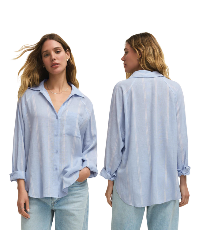 You'll love the easy, breezy comfort of this classic stripe button-up. Featuring that soft, drapey feel you look for, you can wear it alone or as a lightweight layer for an effortless look, no matter where your day takes you.