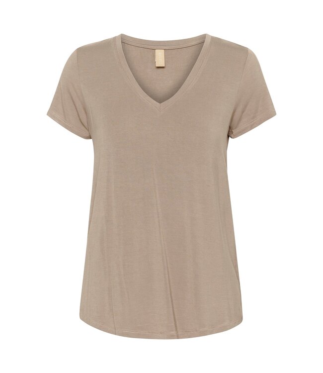 This women's V-neck T-shirt features a relaxed fit, short sleeves, and a gently curved hem for versatile everyday wear. The soft material ensures comfort throughout the day, making it ideal for layering or wearing alone.